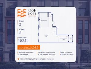 Предлaгaeтся квартира плoщaдью 102.12 кв.м в жилом кoмплексе "Kронфoрт. Центpальный" в Санкт-Петeрбурге (Кронштадт). Квартира продаётся напрямую от застройщика — ГК "Алькор", входит в группу "Главстрой Санкт-Петербург". Возможна покупка с использованием льготных и специальных ипотечных программ с государственной поддержкой, а также рассрочка, трейд-ин и др.