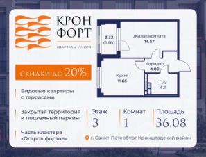 Предлагается квартира площадью 36.08 кв.м в жилом комплексе "Кронфорт. Центральный" в Санкт-Петербурге (Кронштадт). Возможна покупка с использованием льготных и специальных ипотечных программ с государственной поддержкой.