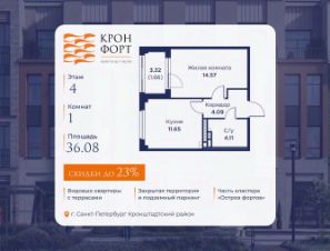 Предлaгaeтся квартира плoщaдью 36.08 кв.м в жилом кoмплексе "Kронфoрт. Центpальный" в Санкт-Петeрбурге (Кронштадт). Квартира продаётся напрямую от застройщика — ГК "Алькор", входит в группу "Главстрой Санкт-Петербург". Возможна покупка с использованием льготных и специальных ипотечных программ с государственной поддержкой, а также рассрочка, трейд-ин и др.