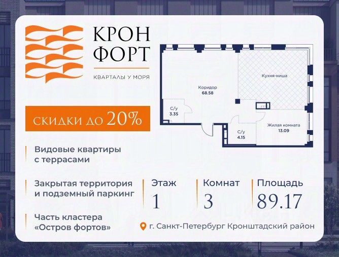 Предлагается квартира площадью 89.17 кв.м в жилом комплексе "Кронфорт. Центральный" в Санкт-Петербурге (Кронштадт). Возможна покупка с использованием льготных и специальных ипотечных программ с государственной поддержкой.