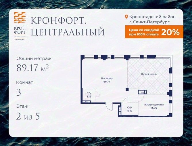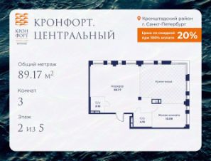 Предлагается квартира площадью 89.17 кв.м в жилом комплексе "Кронфорт. Центральный" в Санкт-Петербурге (Кронштадт). Возможна покупка с использованием льготных и специальных ипотечных программ с государственной поддержкой.