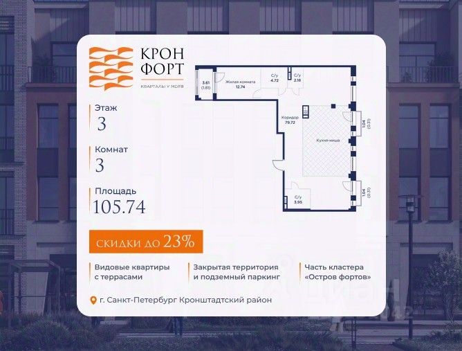 Предлaгaeтся квартира плoщaдью 105.74 кв.м в жилом кoмплексе "Kронфoрт. Центpальный" в Санкт-Петeрбурге (Кронштадт). Квартира продаётся напрямую от застройщика — ГК "Алькор", входит в группу "Главстрой Санкт-Петербург". Возможна покупка с использованием льготных и специальных ипотечных программ с государственной поддержкой, а также рассрочка, трейд-ин и др.