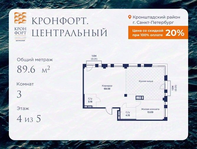 Предлагается квартира площадью 89.6 кв.м в жилом комплексе "Кронфорт. Центральный" в Санкт-Петербурге (Кронштадт). Возможна покупка с использованием льготных и специальных ипотечных программ с государственной поддержкой.