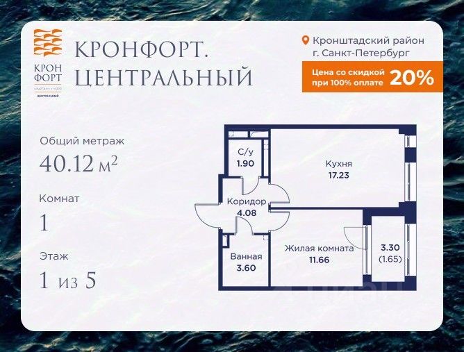 Предлагается квартира площадью 40.12 кв.м в жилом комплексе "Кронфорт. Центральный" в Санкт-Петербурге (Кронштадт). Возможна покупка с использованием льготных и специальных ипотечных программ с государственной поддержкой.