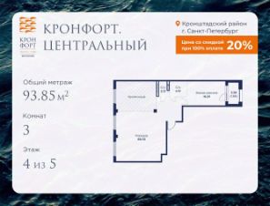 Предлагается квартира площадью 93.85 кв.м в жилом комплексе "Кронфорт. Центральный" в Санкт-Петербурге (Кронштадт). Возможна покупка с использованием льготных и специальных ипотечных программ с государственной поддержкой.