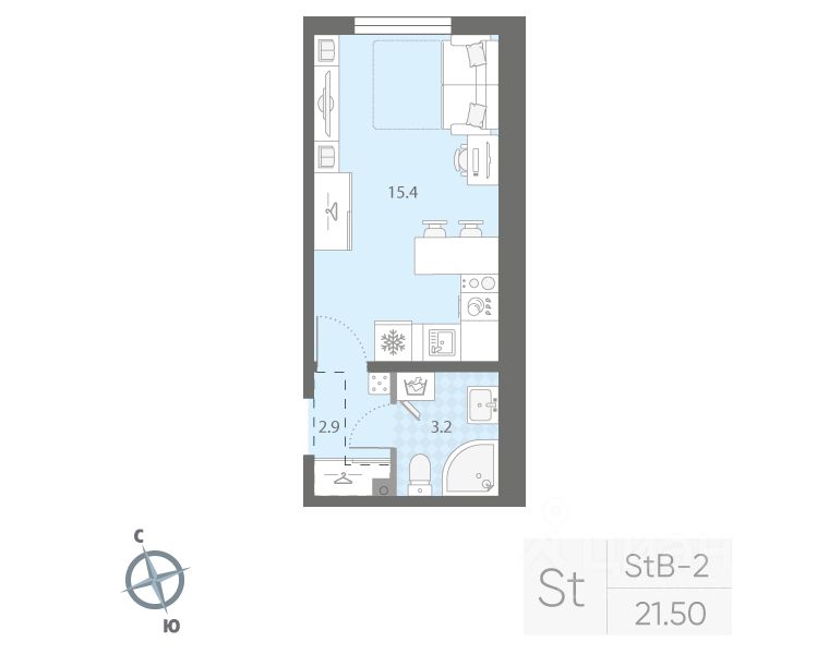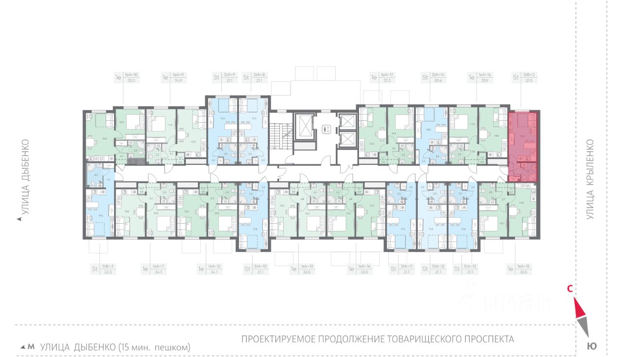 Продается студия в ЖК "Дыбенко Парк" на 2 этаже. Общая площадь составляет 21.50 кв. м. Квартира с чистовой отделкой. Жилой комплекс располагается по адресу Санкт-Петербург, проспект Товарищеский.