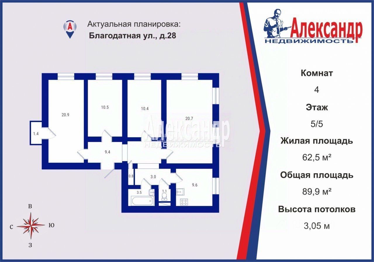 1691632 Квартира мечты ! Сталинка! Московский проспект! Потолки 3,05 м! Шикарная планировка! Спешите!