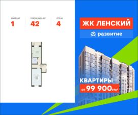 В продаже квартира площадью 42.00 кв. м с отделкой white box на 4 этаже 16 этажного дома. Квартира находится в 4834 корпусе.