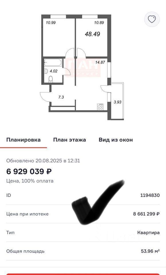 Возможна покупка в семейную ипотеку под 5,99% годовых.