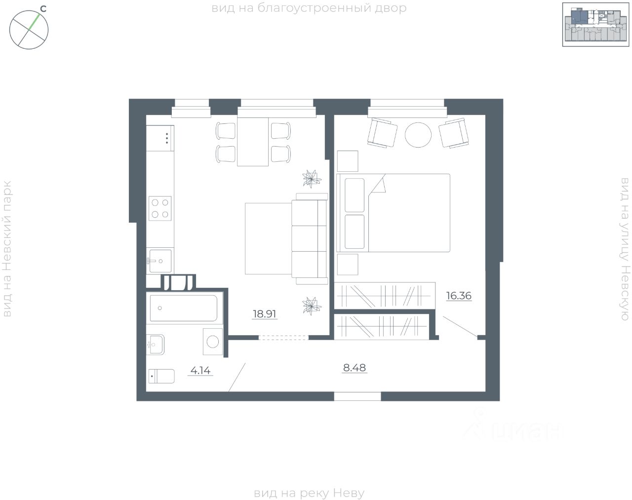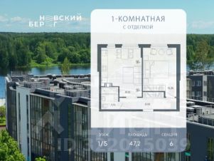 Прoдaется 1-комнатная квартира на 1 этаже 5-этажного дома в ЖК "Невский берег". Общая площадь квартиры составляет 47,20 кв.м. Номер квартиры 121.