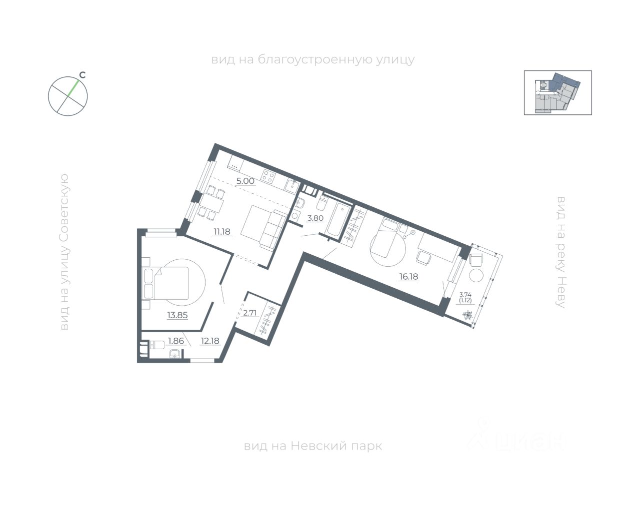 - Видовые квартиры с окнами на Неву и парк
