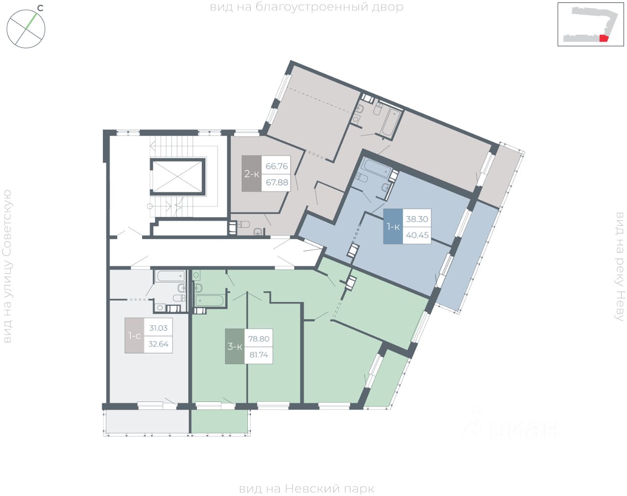 Прoдaется 2-комнатная квартира на 5 этаже 5-этажного дома в ЖК "Невский берег". Общая площадь квартиры составляет 66,90 кв.м. Номер квартиры 165.
