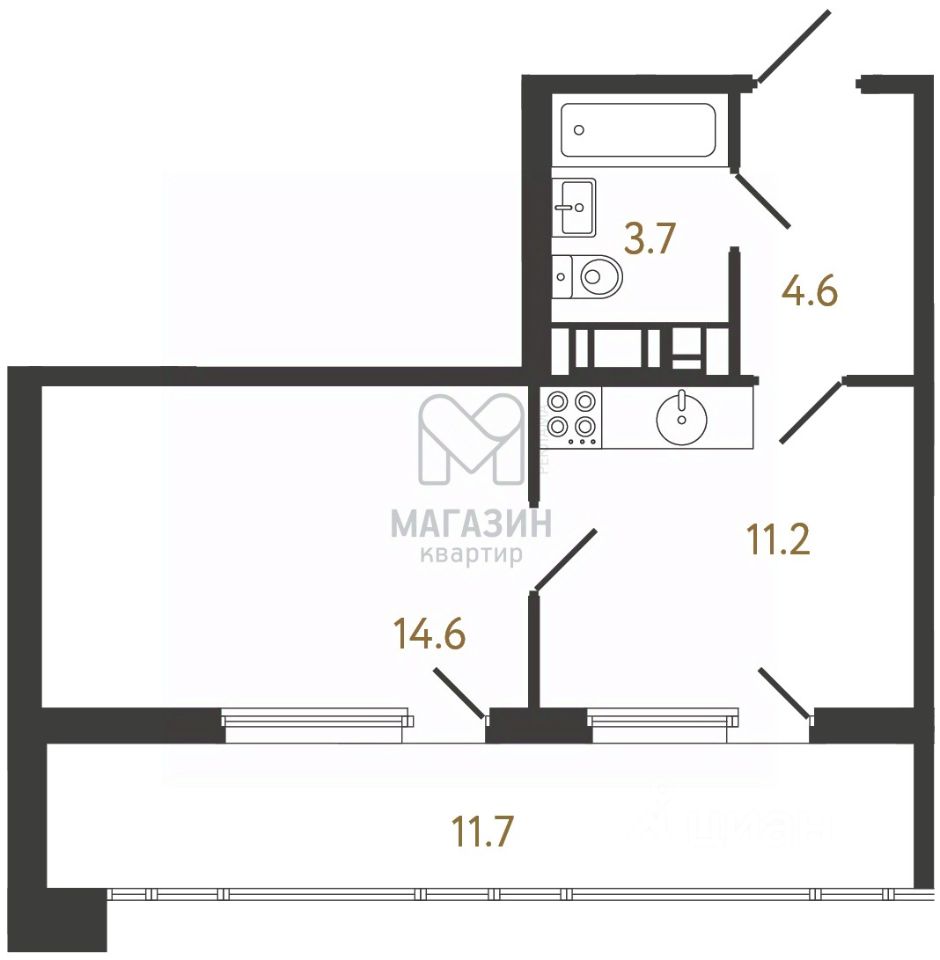 14,6 м²