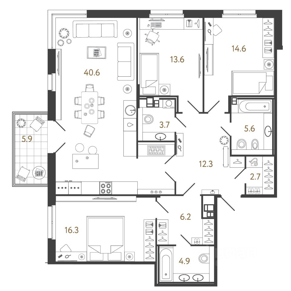 Площадь кухни40,6 м²