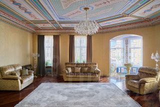 Уникальное предложение квартиры по местоположению, дому, отделке и интерьеру. Квартира 259,2 кв.м., пятикомнатная, большая кухня-столовая, три санузла, кладовые, два входа с разных парадных. Готовая к проживанию, не требуется косметический ремонт. Квартира в таком исключительном месте и неповторимом виде будет семейной ценностью и реликвией, соответствует духу Санкт-Петербурга. Находится в самом центре исторических и культурных мест города, расположение дома на набережной реки Мойки усиливает ее ценность. Квартира видовая, из всех окон открывается замечательный вид на реку Мойку и набережную, на памятник Николаю I и площадь Исаакиевского собора, легендарный отель Астория, Синий и Красный мосты. В минутах ходьбы Исаакиевский собор, Медный всадник, отель Англетер, Законодательное собрание Санкт-Петербурга, Зимний Дворец, Казанский собор, Спас на Крови, Государственный Эрмитаж, Новая Голландия, академические театры Санкт-Петербурга. Квартира располагается в бывшем доходном доме Корпуса К. Б., построенном по проекту известного архитектора Гешвенда А.Р. Класс проекта - элитный дом, архитектура - эклектика. Собственником квартиры проведен капитальный ремонт, редкий случай, когда новые бетонные перекрытия сделаны между соседними верхними и нижними этажами, заменены все инженерные коммуникации, произведена шумо-изоляция помещений. Городом проведен капитальный ремонт всего дома. Отделка и интерьер выполнены собственником квартиры в историческом санкт-петербургском дворцовом стиле, профессионально и качественно, каждая деталь продумана до мелочей. Роспись потолков, стен и проемов создавалась художниками Академии художеств им. И. Репина и Российской Академию Живописи, Ваяния и Зодчества Ильи Глазунова. Дубовый паркет, двери, оконные рамы и элементы интерьера изготовлены на заказ в санкт-петербургских мастерских. Отдельные элементы стен, проемов, эркеров и подоконники отделаны натуральным камнем оникс. Восстановленный действующий камин с аутентичными изразцами. Квартира обустроена предметами интерьера, соответствующие элементам отделки.