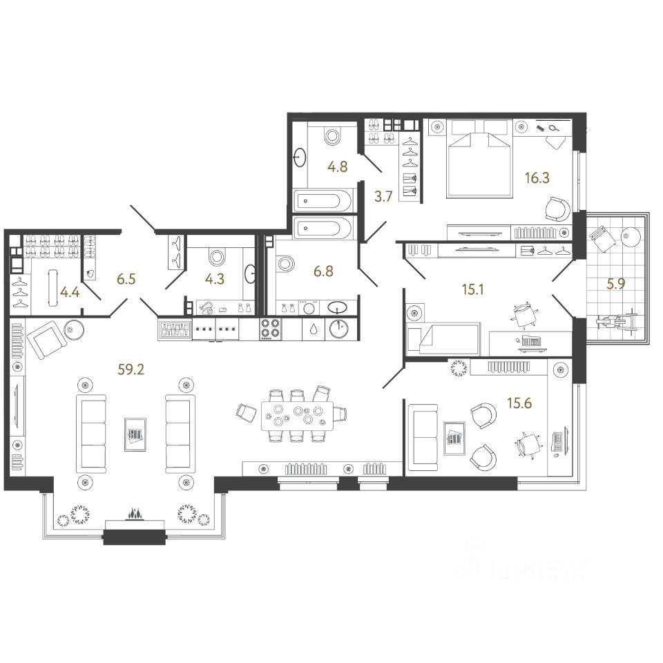 Площадь кухни59,2 м²