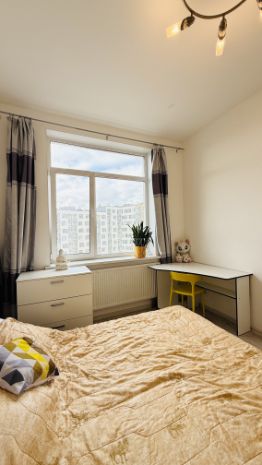 - В квартире высокие потолки, ремонт в светлых тонах, в прихожей напольная плитка. Остается вся мебель и техника