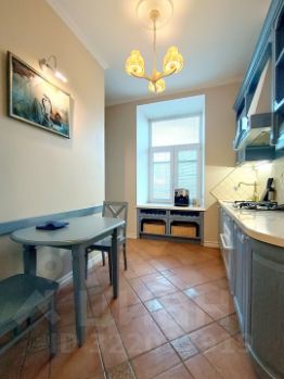 Окна квартиры от Московского проспекта отделяет тихий зеленый сквер. Квартира находится на уровне третьего этажа, т.к в доме присутствует полноценный цокольный этаж. В парадной на этажах расположены всего две квартиры. Лифт Otis. Установлено видеонаблюдение. Все коммуникации в квартире новые.