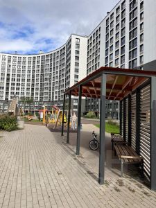 На первых этажах корпусов вдоль Планерной улицы расположены магазины, кафе, аптеки. На территории находится детский сад на 120 мест, рядом с жилым комплексом будут построены еще один детский сад и школа. Рядом живописный Юнтоловский лесопарк , можно насладиться природой и чистым воздухом совершая пеший променад.