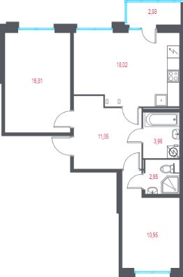 Квартира 40 в корпусе 3 от застройщика в ЖК "Город-спутник Южный"