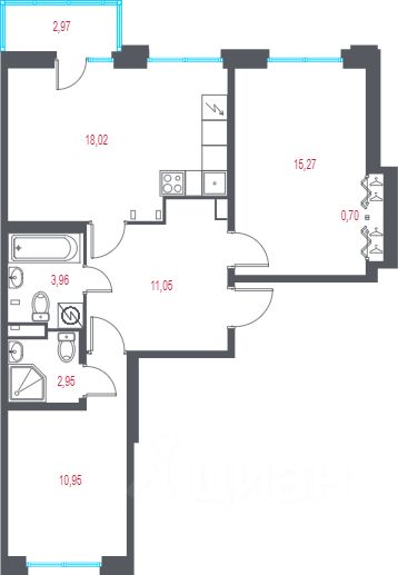 Квартира 45 в корпусе 3 от застройщика в ЖК "Город-спутник Южный"