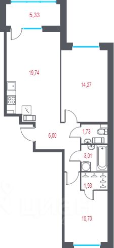 Квартира 34 в корпусе от застройщика в ЖК "Город-спутник Южный"