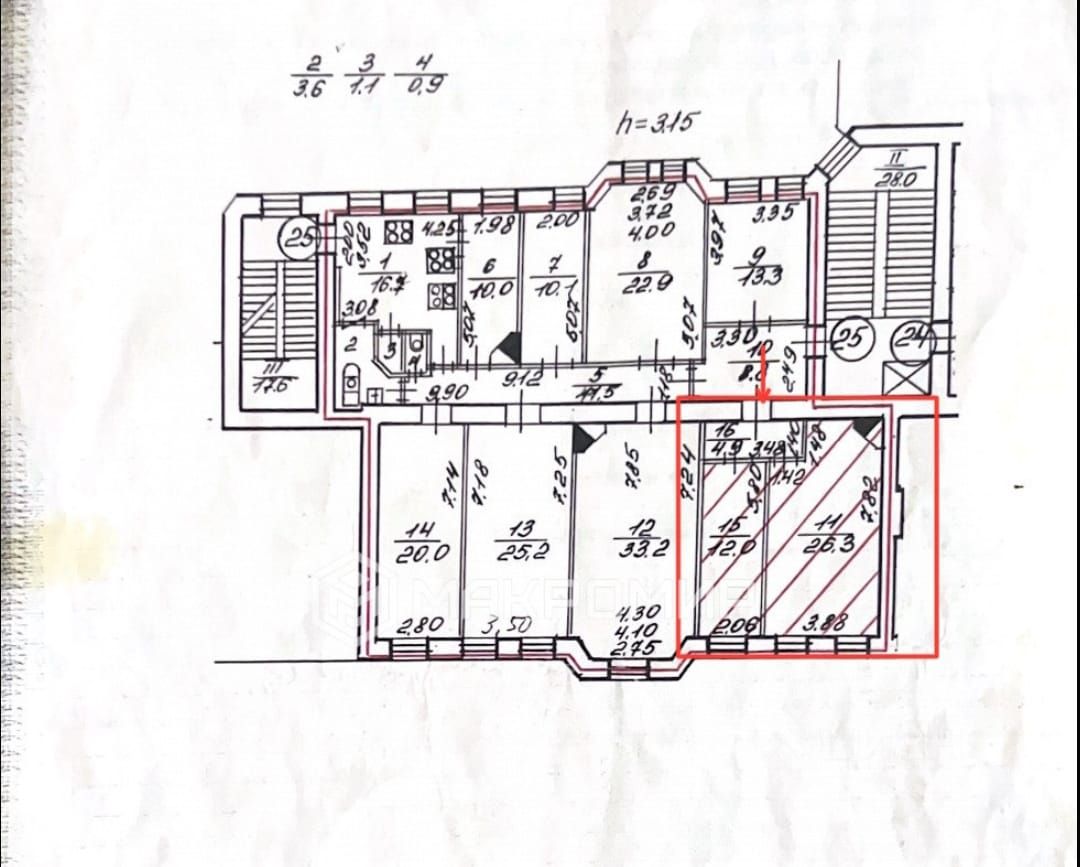 Большая комната 26,3 м2 с собственным камином, вторая по меньше 12 м2, и прихожая 4,9 м2 в единоличном пользовании. Высота потолков 3,15 м.