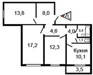Квартира очень теплая, с тремя изолированными комнатами, большой кухней и вместительным холлом. Раздельный сан. узел. Застекленный балкон. Ремонт выполнен с использованием качественных импортных материалов, создавая приятную атмосферу уюта и тепла. Для рационального и удобного хранения вещей имеются четыре шкафа-купе, которые были изготовлены и смонтированы под заказ.