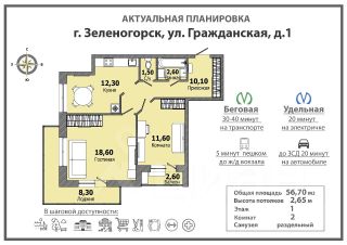 - Общая площадь: 56,7 кв.м, что обеспечивает достаточно пространства для комфортного проживания.