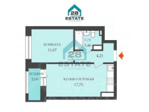 Планировка функциональна: кухня-гостиная 17.75 кв.м., спальня- 11.07кв.м., ниша под гардероб в прихожей, просторный с/у.