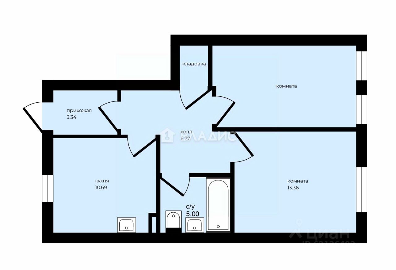 Общая площадь 52,4 кв.м, а жилая 28 кв.м.