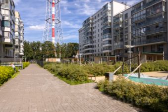Просторные, безопасные дворы без машин с детскими площадками и прогулочной территорией для жителей. На территории комплекса функционирует государственный детский сад.