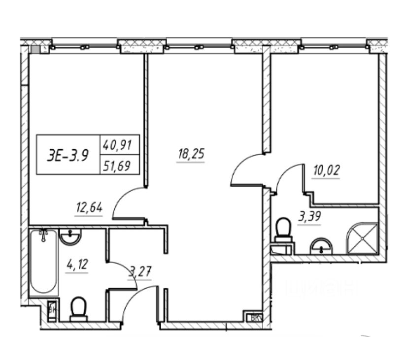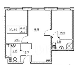 Сдача 4 кв. 2025, ключи 1 кв. 2026. Евро трешка с отделкой White box в корпусе 3.9: кухня-гостиная 18,25, мастер-спальня 10,02 с санузлом 3,39 и кабинет или детская 12,64, при входе прихожая 3,27 с отдельным санузлом 4,12, высота потолков 2,7 м. Без обременений, 1 участник ДДУ.