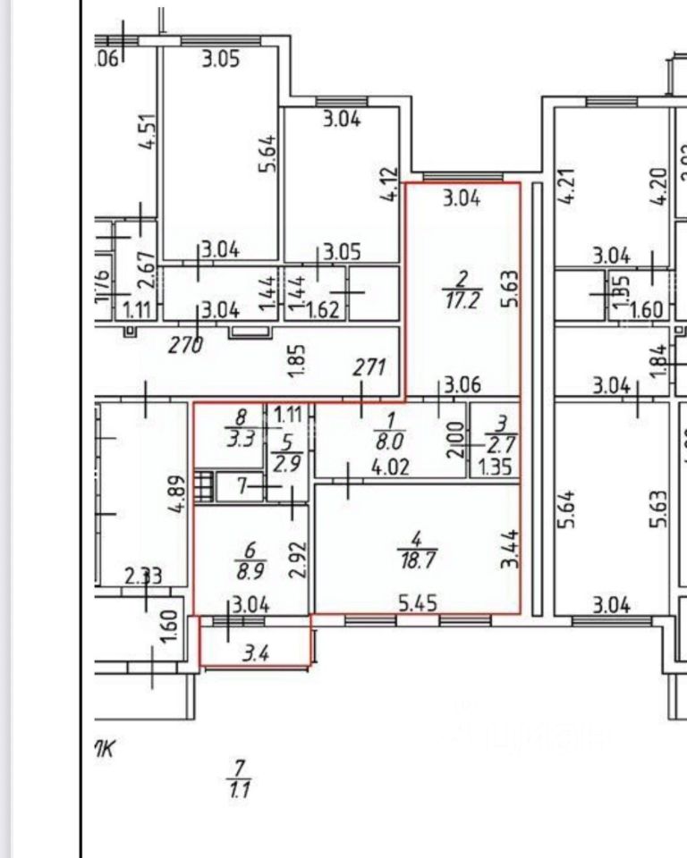 - 2 большие комнаты - 18,7 кв м и 17,2 кв м;