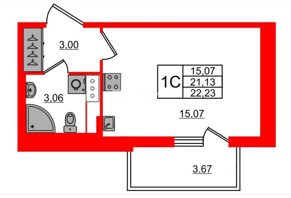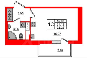 Студия правильной формы окно на южную сторону. Качественная чистовая отделка: