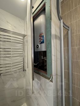 В санузле есть бойлер скрытый от глаз, радиаторы так же утоплены в стену.