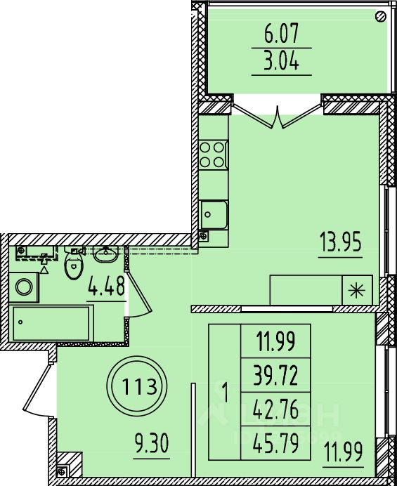 Общая площадь39,72 м²