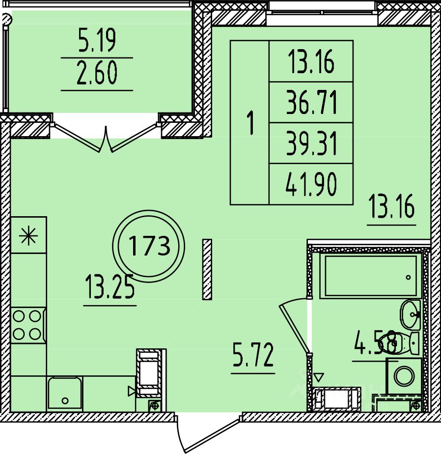 Общая площадь36,71 м²