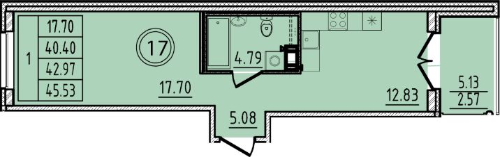 Жилая площадь17,7 м²