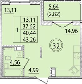 Общая площадь37,62 м²