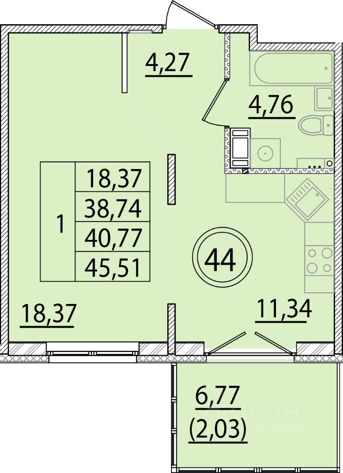Общая площадь38,74 м²