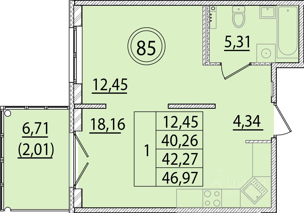 Общая площадь40,26 м²