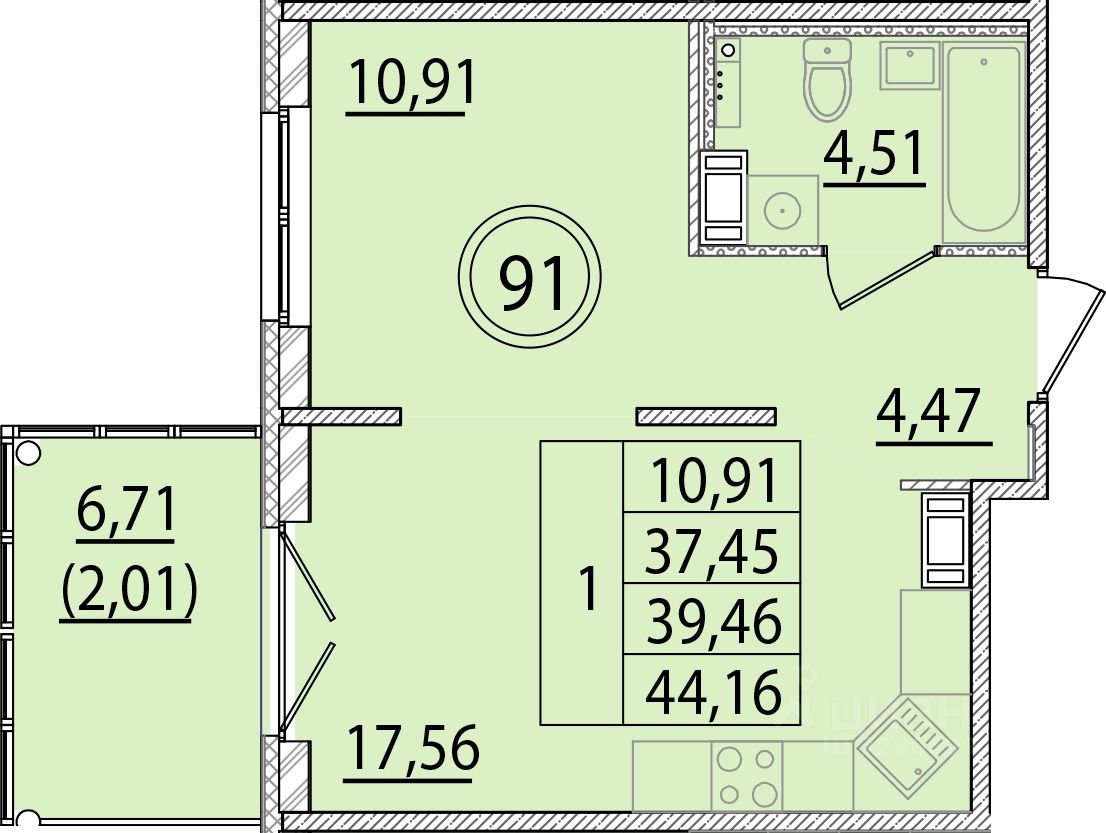 Общая площадь37,45 м²
