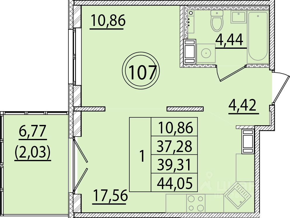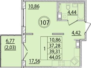 Общая площадь37,28 м²