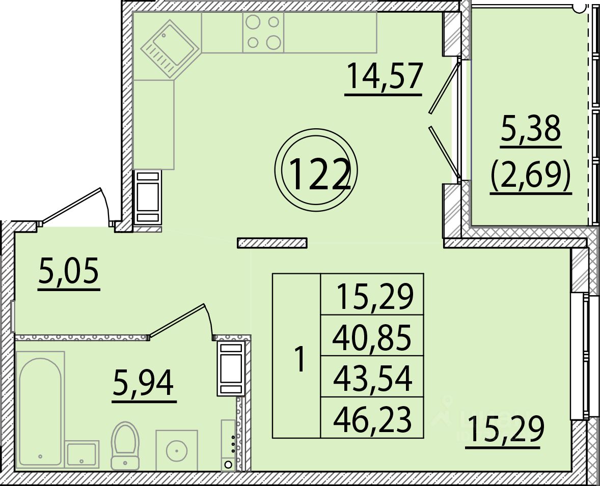 Жилая площадь15,3 м²