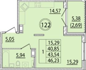 Общая площадь40,85 м²