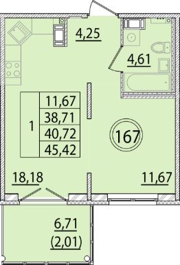 Общая площадь38,71 м²