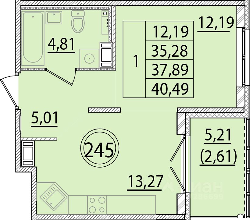 Общая площадь35,28 м²