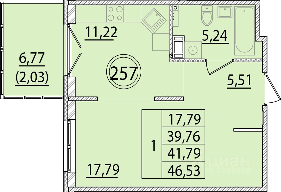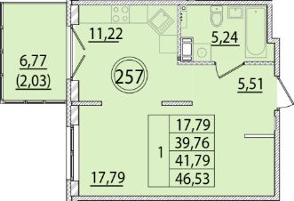 Общая площадь39,76 м²