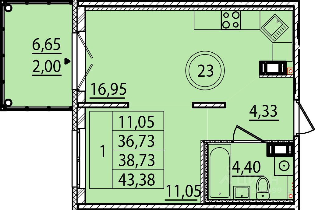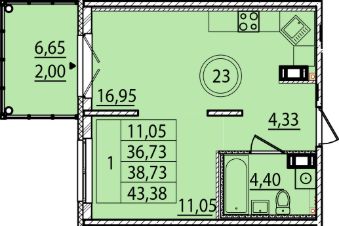 Общая площадь36,73 м²